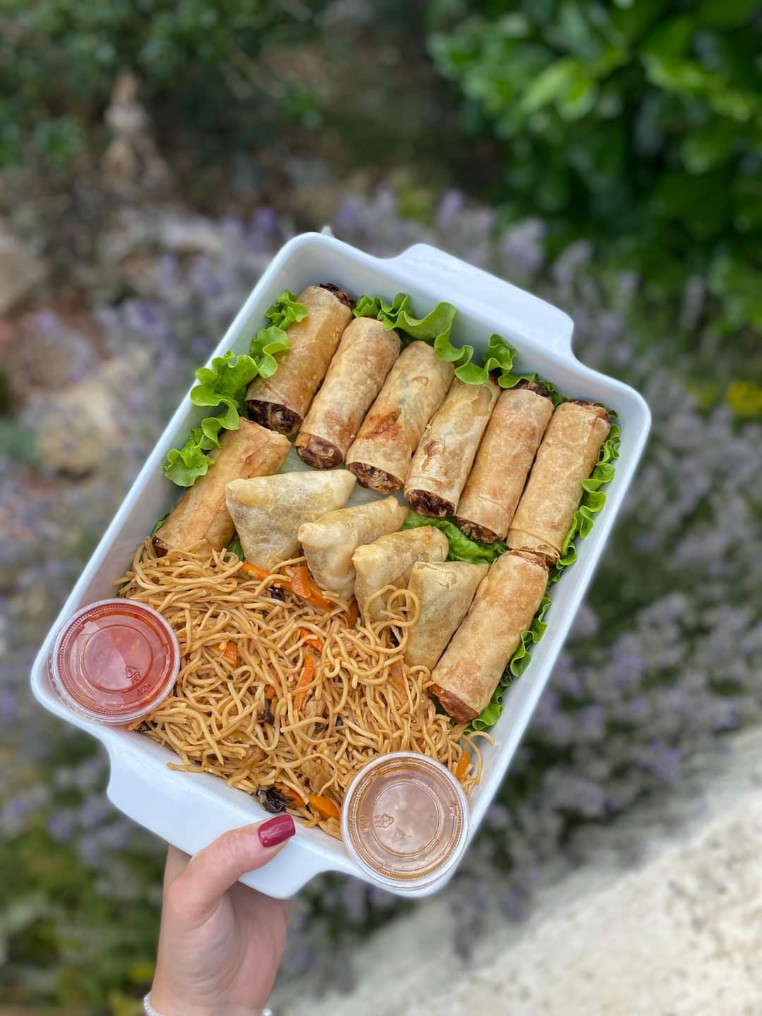 Très déçue de ce traiteur si on peut l'appeler comme ca. Propose 2 plats : bœuf sauté et porc caramel C'était un porc à la confiture... et le bœuf c'était des lambeaux de viande limite crus qui trempaientt dans une sauce qui elle par contre était très goûteuse. On a le choix entre 3 sortes de nems, poulet, porc et crevettes... Nous sommes encore à la recherche de la viande, les nems sont remplis de carottes et de vermicelles, ils sont assaisonnés à outrance de sauce sucrée. Rien a dire de spécial sur le riz cantonnais, les nouilles sont fadasse chez fades. J'aurai aimé ne pas être aussi dure dans mon commentaire mais j'en ai eu pour 50€ pour 4 et nous n'avons pas pu mangé 1/3.