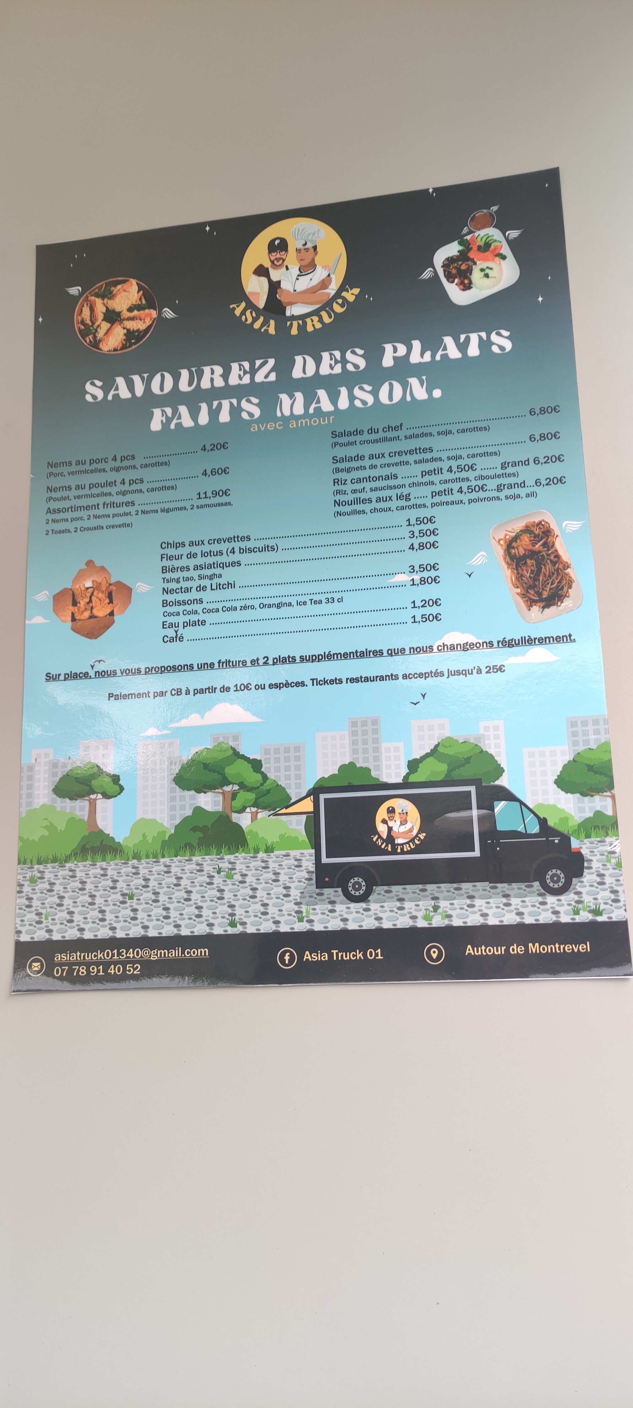 Je vous conseille et recommande vivement ce food truck. Grâce à eux, ils m’ont fait découvrir la vraie nourriture asiatique.😊 Repas savoureux et les plats sont généreux 😋😋 C’est une très belle découverte et dorénavant je mange régulièrement leurs plats. Un accueil chaleureux, bref une équipe au TOP👍👍👍