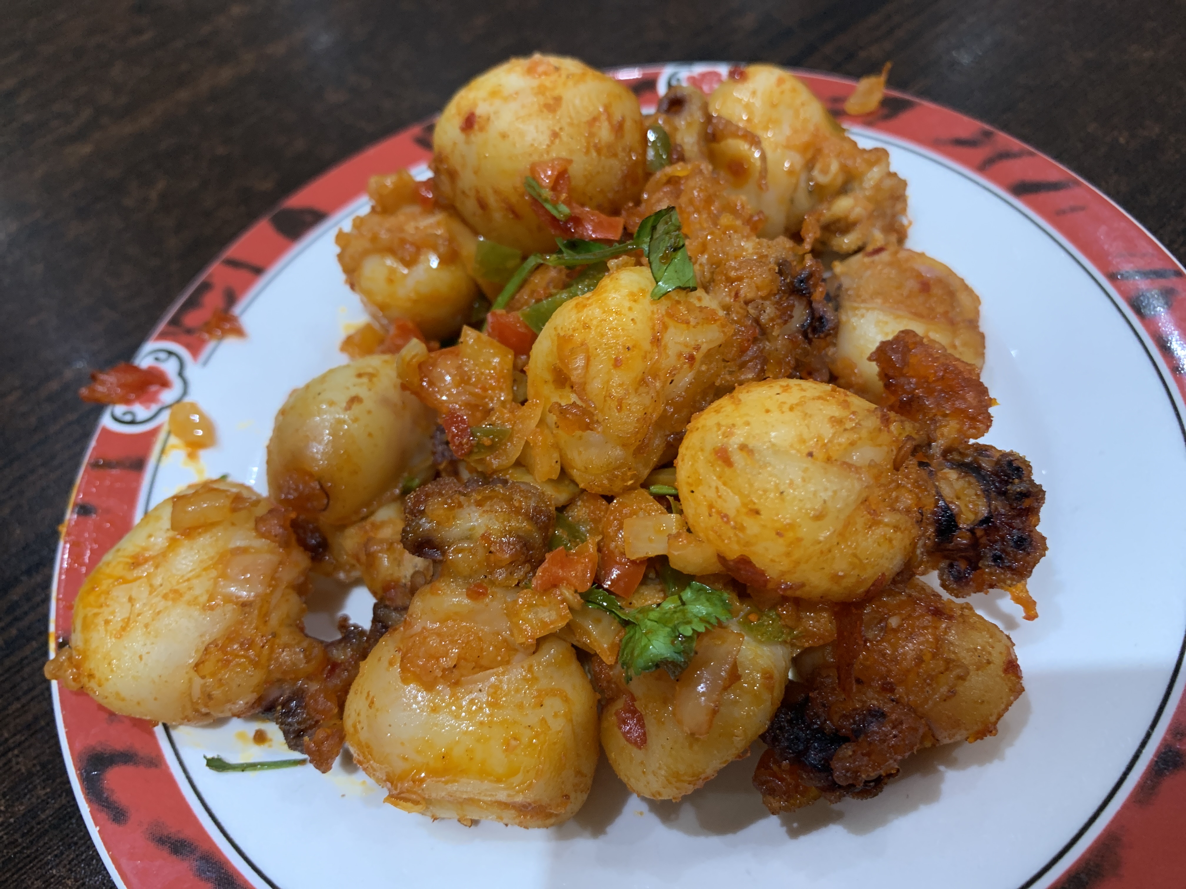 Excellentes seiches au sate avec une bière Tsingtao ! C’est à mourir d’envie ! Également, l’accueil chaleureux de la patronne !