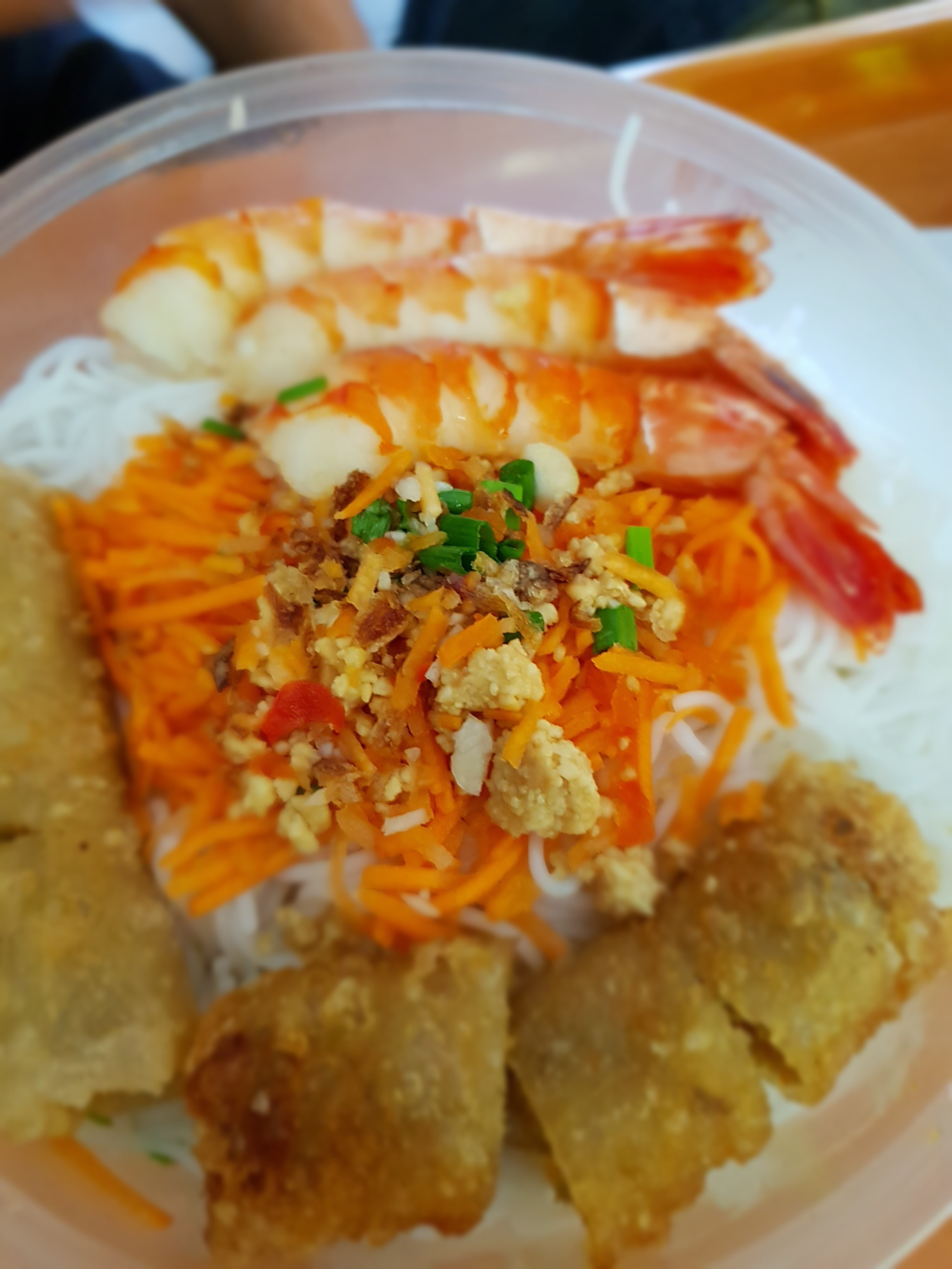 Je tiens à partager mon expérience car je suis extrêmement déçue, j'ai spécifiquement demandé un Bo Bun Crevette sans aucune viande. J'ai réitéré cette demande à plusieurs reprises lors de la prise de commande et j'ai souligné que je ne consommais pas de viande. Malheureusement, à ma grande surprise, lorsque j'ai commencé à déjeuner, j'ai immédiatement remarqué un goût de viande. J'ai immédiatement demandé à la personne qui m'a servi ce qu'il y avait dans le plat, et elle m'a informé que du porc dans le Bo Bun Crevette. Je tiens à souligner à quel point cette situation est inadmissible.