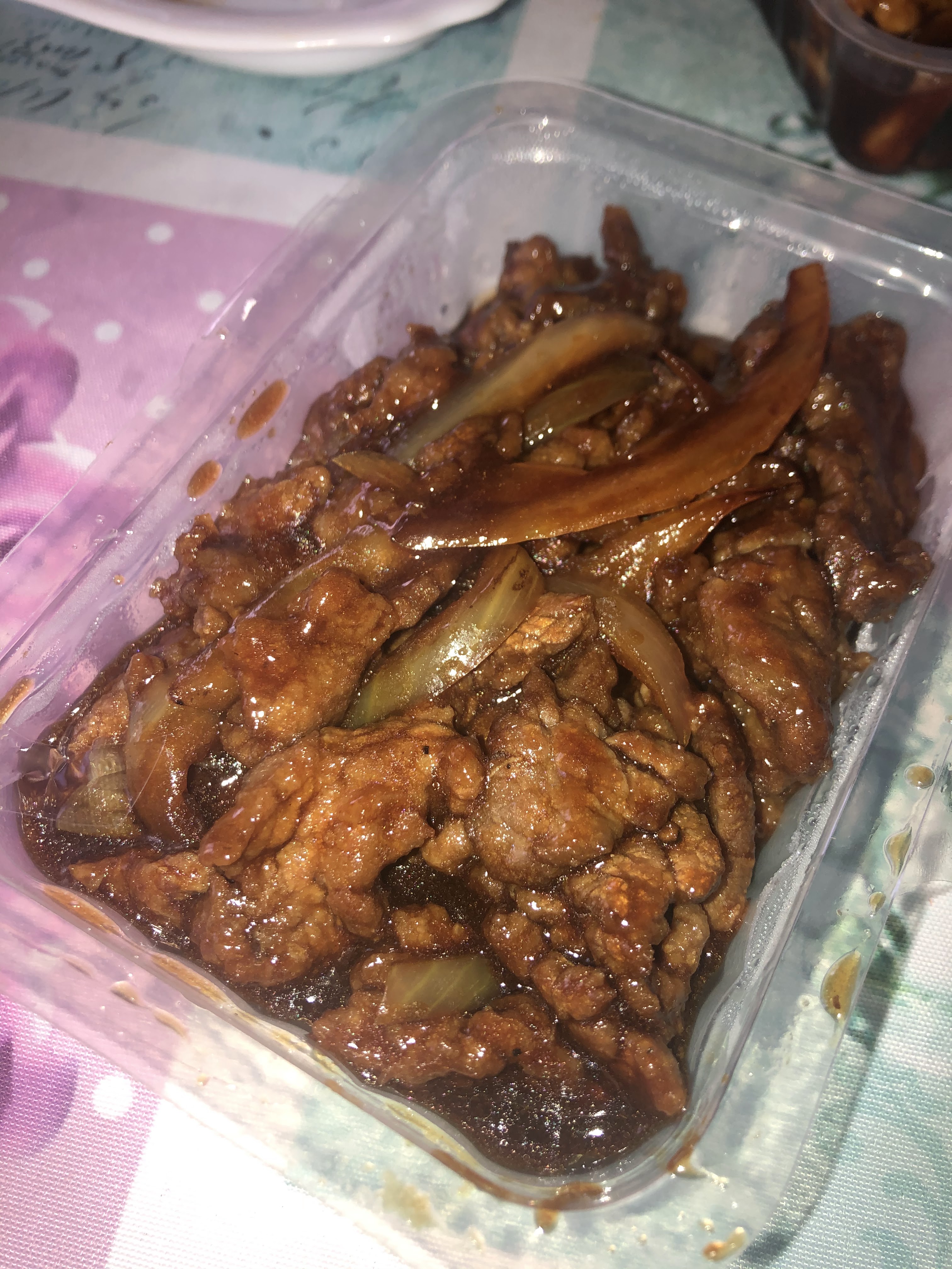 Traiteur chinois J'ai pris un rouleau chinois comme entre il avait le coût de plastique en plat un boeuf au oignons sans coût. Je né recommande pas ce traiteur.