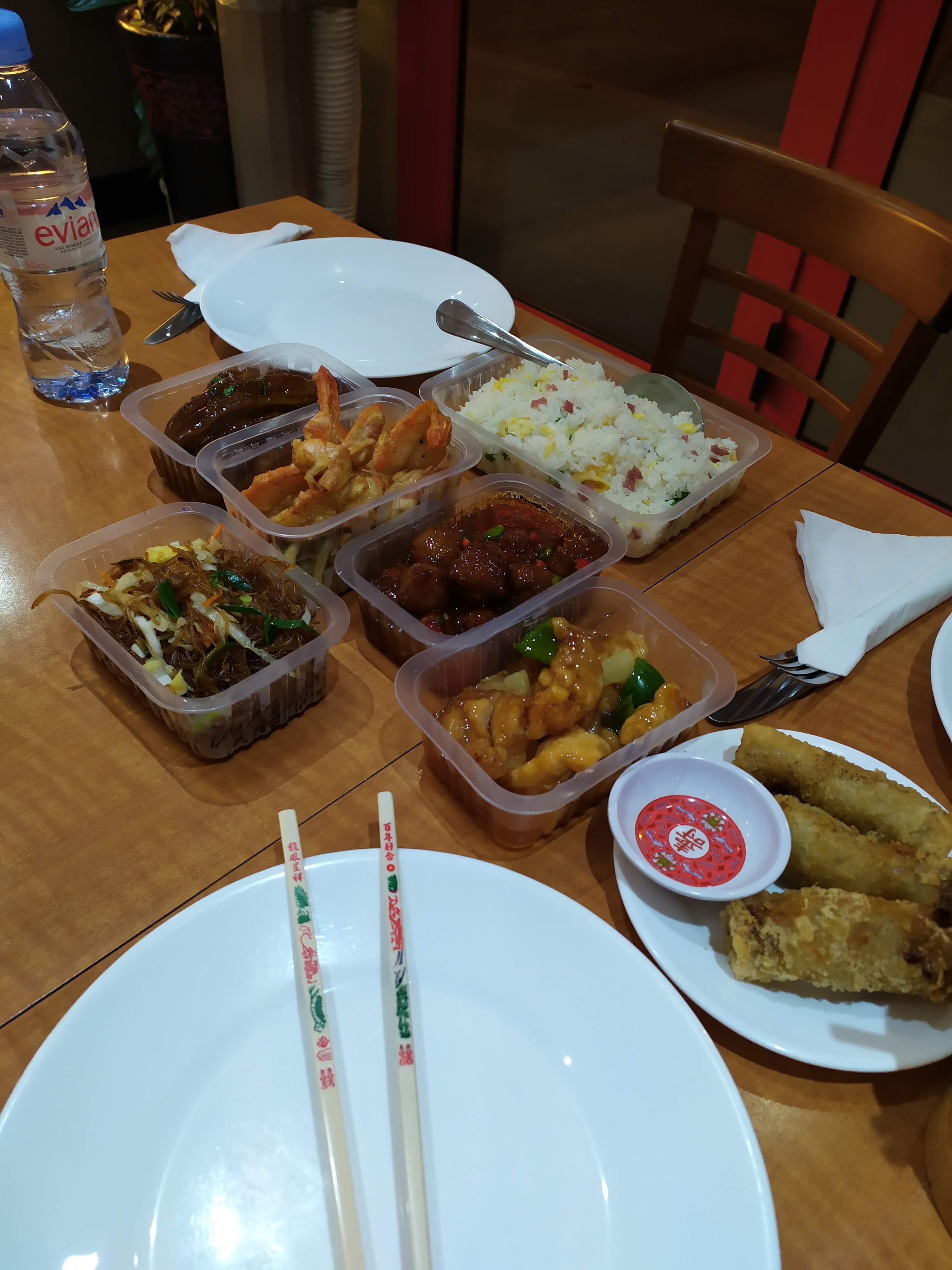 Nous avons marché toute la journée dans Paris et avions faim. Nous voulions manger de la pizza, mais la pizzeria était uniquement à emporter et nous voulions nous asseoir et manger en toute tranquillité. En revenant au métro, nous sommes passés devant ce petit restaurant chinois et sommes entrés immédiatement. L'endroit était petit et nous avons attendu notre tour. La dame qui nous a aidé était très sympathique et patiente (nous ne parlons pas français). Tout avait l'air frais et délicieux. Nous avions tellement faim que nous avons commandé beaucoup de nourriture. Nous avons pris les nouilles brunes et le riz frit jaune avec des œufs et des pois, du poulet rôti, du poulet saté, des crevettes, du bœuf et des légumes. Nous avions tellement de nourriture que la dame nous a même préparé un doggy bag à emporter à l'hôtel. La nourriture était délicieuse. Tout était si bon. Le restaurant était petit. Mais quand nous mangions, les gens venaient toujours pour emporter de la nourriture. Les propriétaires étaient serviables et sympathiques avec tous les clients. Les prix étaient bons pour tant de nourriture. Plus tard, à l'hôtel, j'ai réchauffé le reste de la nourriture et je l'ai mangé... miam. J'y retournerai certainement en avril prochain quand je serai de nouveau à Paris.