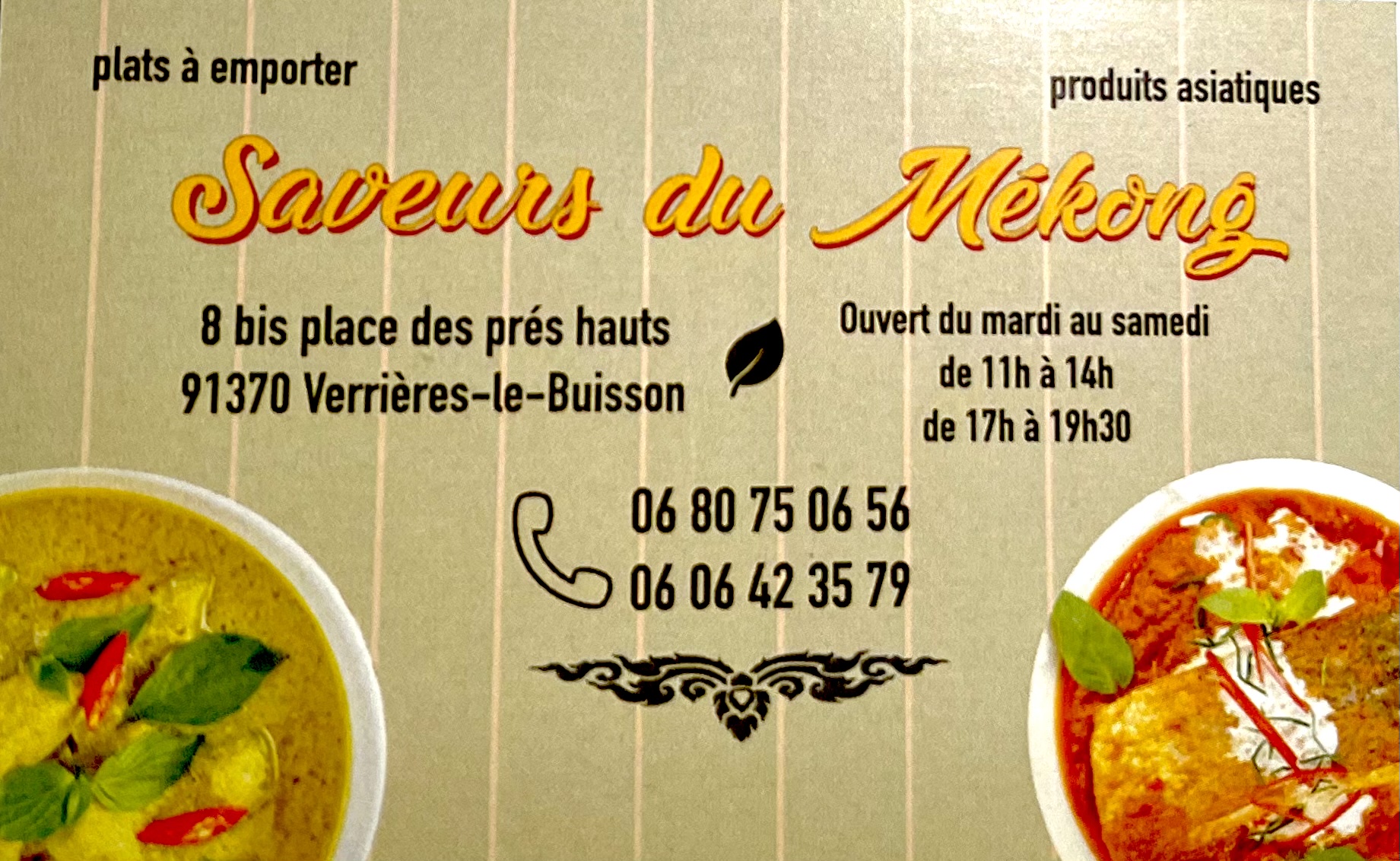 Voici toutes les informations sur le Plats chinois à emporter Saveurs Du Mekong qui ce trouve au Centre Commercial Des Prés Hauts, Bd du Maréchal Juin, 91370 Verrières-le-Buisson (91). Sur cette fiche vous trouverez les photos, l'adresse, les horaires d'ouverture, le numero de téléphone et les avis clients.Vous pouvez églement rédiger un avis si vous le souhaitez en bas de page.