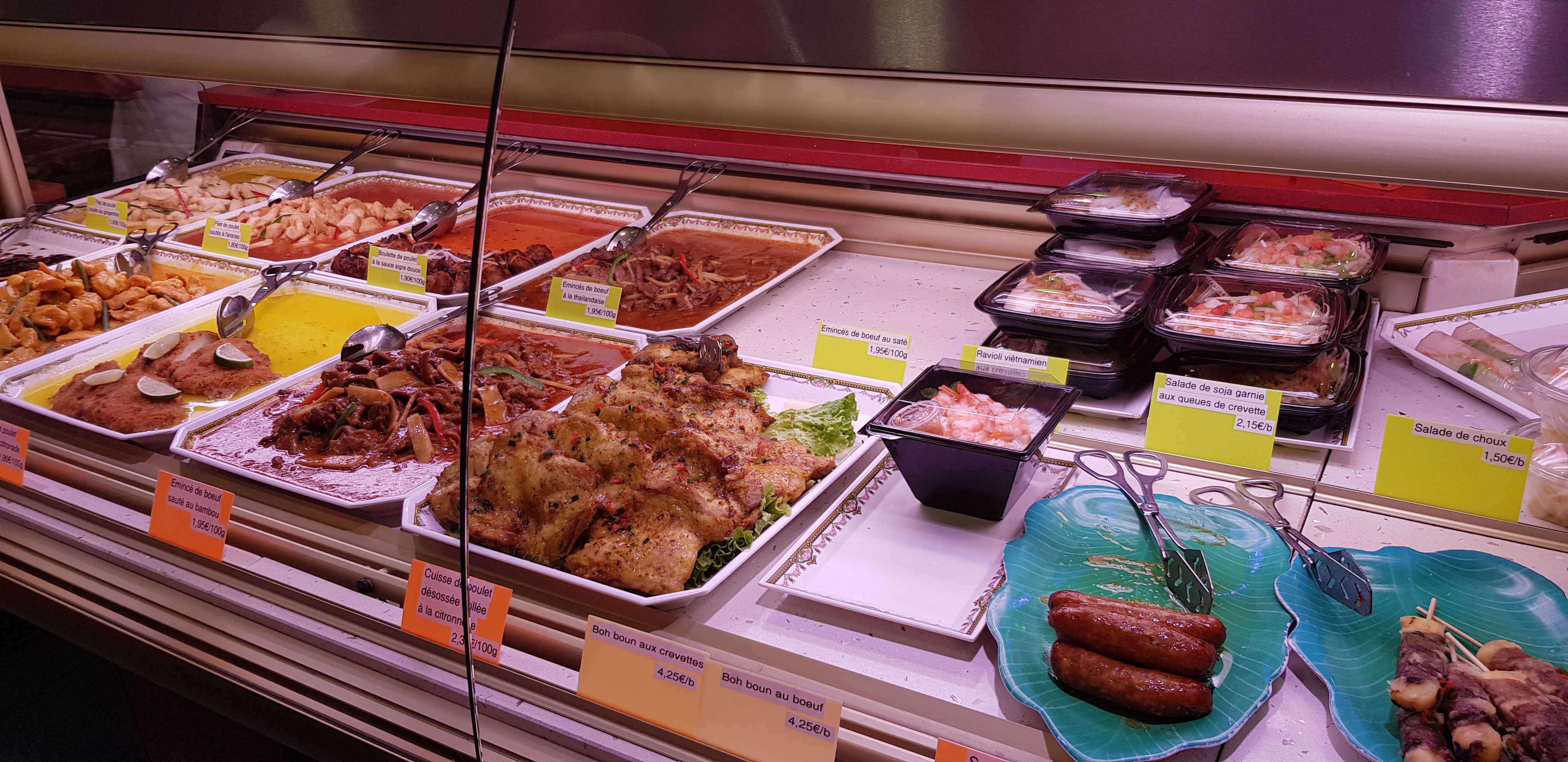Venue ce midi, j'y ai pris du riz cantonais, vermicelle au soja, nems poulet, nems légumes, nems crevettes et beignets de poulet. En ce qui concerne le riz cantonais, pas de crevettes, pas de morceaux d'omelette, quelques petits pois et truffé d'oignons. Les nems et beignets y a pas de secret on sait pertinemment que c'est bien gras, par contre je n'ai jamais ingéré autant d'huile de ma vie en un seul repas. Comparativement à d'autres traiteurs/resto asiatiques faisant des produits similaires, la quantité d'huile est bien trop importante, les nems suintent d'huile ce n'est pas normal mais heureusement qu'ils étaient vendu à la pièce et non au poids.. encore que au vu de la qualité le prix est exorbitant. Goûtez ce que vous faites et constatez par vous-même que les produits à base de friture que vous proposez sont beaucoup trop gras, on ne sent même pas le poulet, la crevette ou les légumes dans ce que vous faites. Il ne s'agit pas d'être médisant, il y a du potentiel, revoyez simplement des détails tels que la quantité d'huile et les contenus de vos riz et pâtes.. Hormis cette déception, la vitrine est toutefois bien agencé et le personnel aimable.