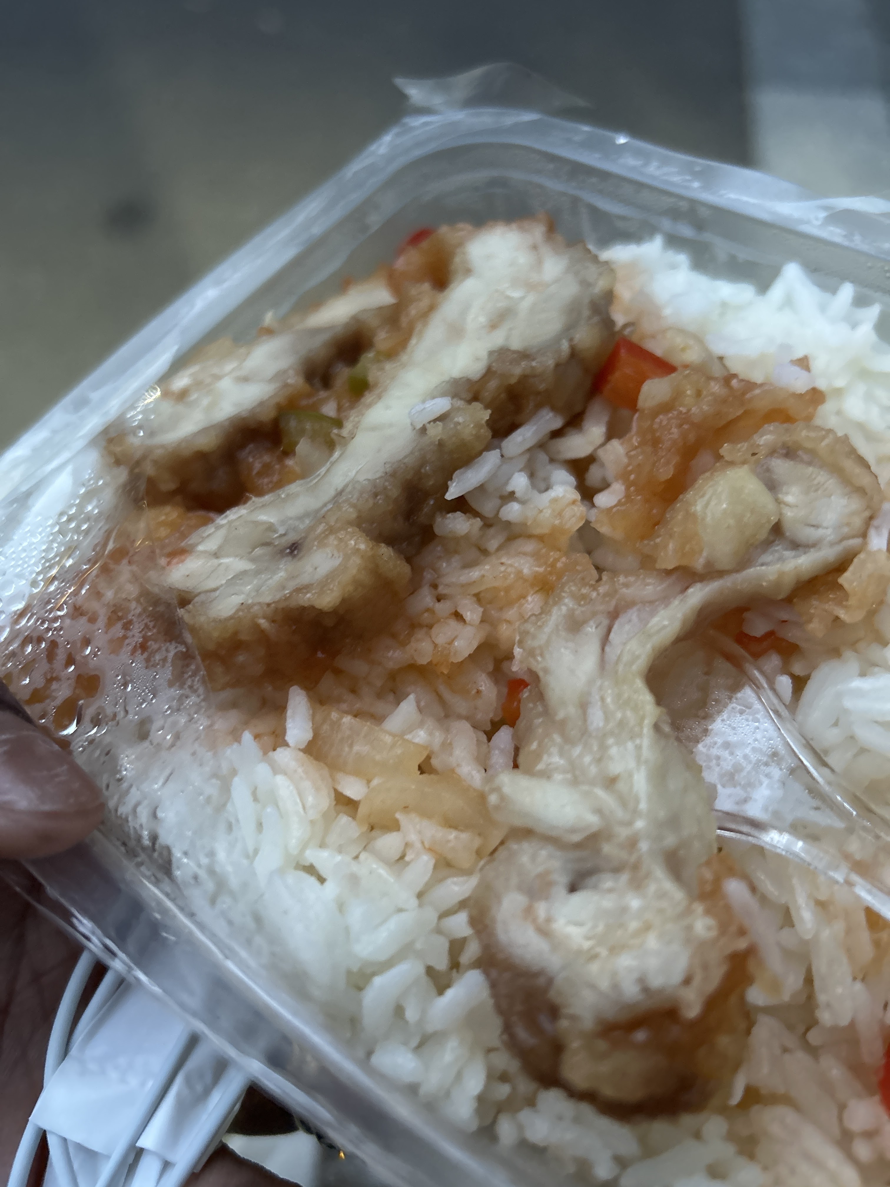 Quantite trop petite, j ai littéralement 3 morceau de poulet qui baigne dans la sauce, 6€50 pour un menu qui ressemble plus une barquette de riz qu a un repas